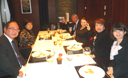 写真は、お祝いの会の席で、名倉康裕さん、部奈壮一さん、会社の皆様と私です。