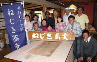 私も完成してすぐから、毎年「時夢館」で、篠山のおいしいぼたん鍋や、マツタケ狩り、ほたる見物など季節を感じさせてくれる篠山に行くのが楽しみの1つとなりました。「時夢館」完成以来15年が経って、今度はここが蕎麦屋さんになるなんて藤本定一さん達も私も、夢にも思わなかった出来事です。ただ、定年後の楽しみにと藤本さんは蕎麦打ちの修行を始め、十割蕎麦をマスターされました。また、地下水を捜して掘ったところ、雑菌・細菌がゼロの湧水が出てきたのです。このおいしい水と仲間の農地で栽培した蕎麦を使い、地産地消の蕎麦屋開店となったのです。
